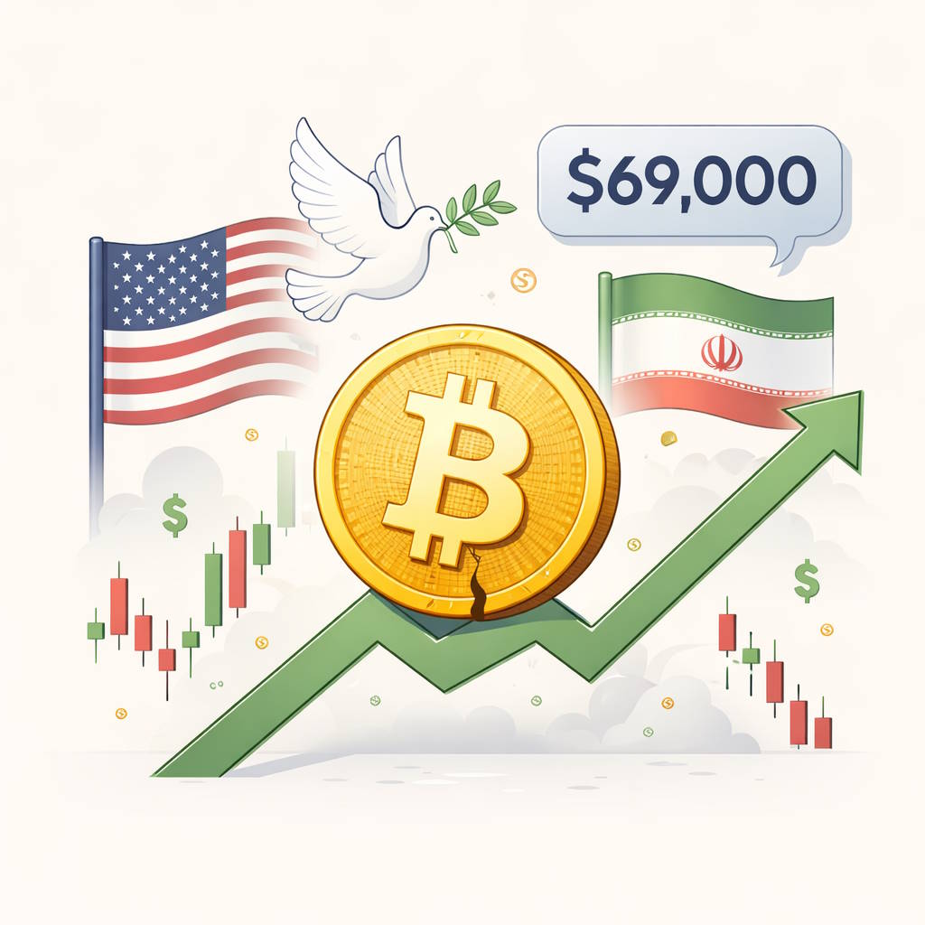 В начале новой торговой недели крупнейшая криптовалюта биткоин (BTC) резко выросла, пробив уровень $69 000, отыграв значительную часть недавнего падения, которое сопровождалось широкой неуверенностью на рынке. Такой сильный внутридневной импульс стал следствием новостей о том, что США, Иран и группa региональных посредников ведут переговоры о возможном 45-дневном прекращении огня, способном остановить многонедельный конфликт с серьёзными последствиями для глобальных рынков.