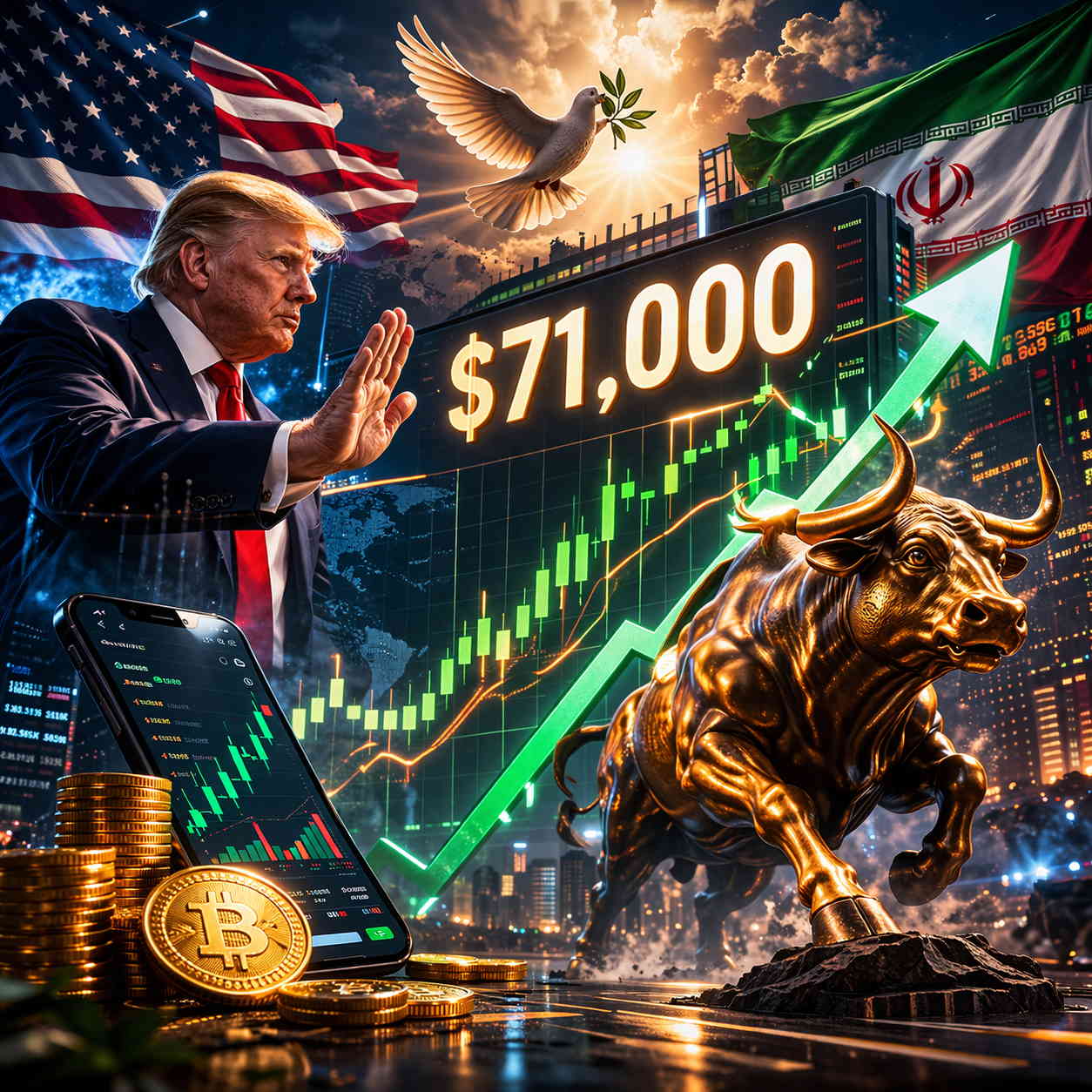 На мировом криптовалютном рынке произошло заметное восстановление цены биткоина (BTC): крупнейший цифровой актив пробил отметку выше $71 000, достигнув локального максимума около $71 800–$72 700, что является существенным ростом по сравнению с предыдущими торговыми сессиями. Эта динамика стала реакцией на важные геополитические события, связанные с конфликтом между США и Ираном — в частности, на объявление о временной паузе в ударах и переговоры о перемирии.